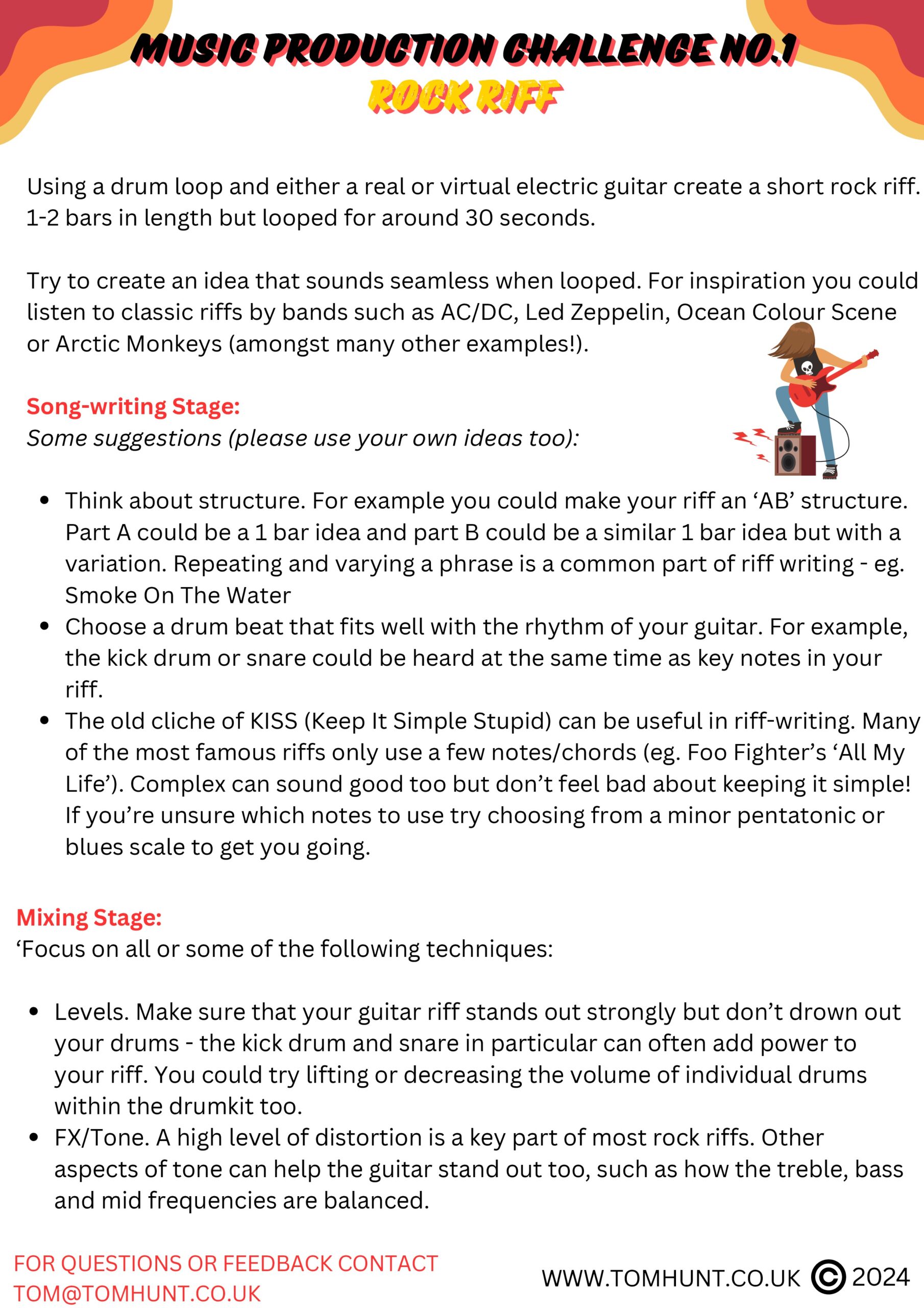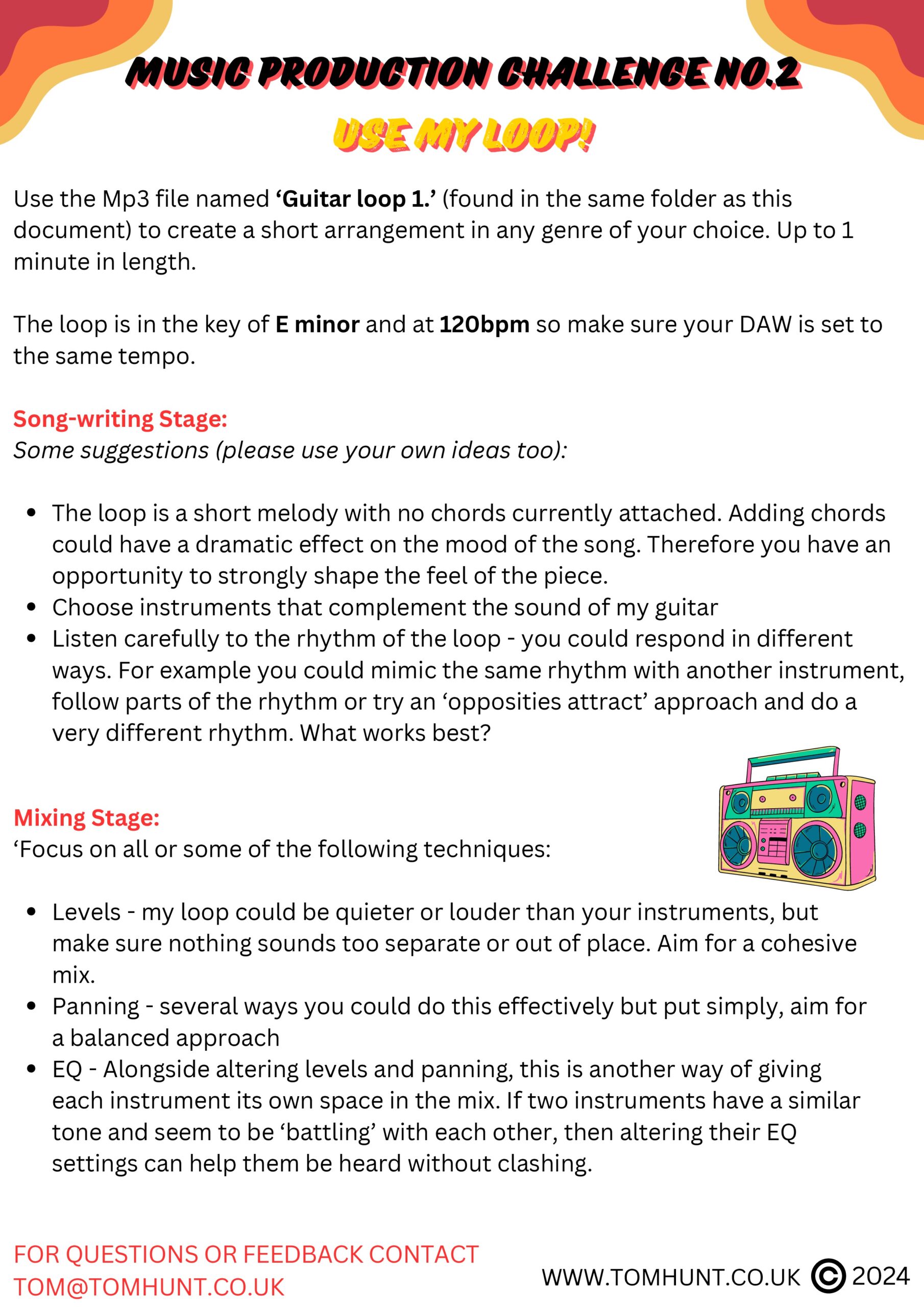 An example of lesson content. My Music Production Challenges give students a fun focus to lessons that includes core producing skills.